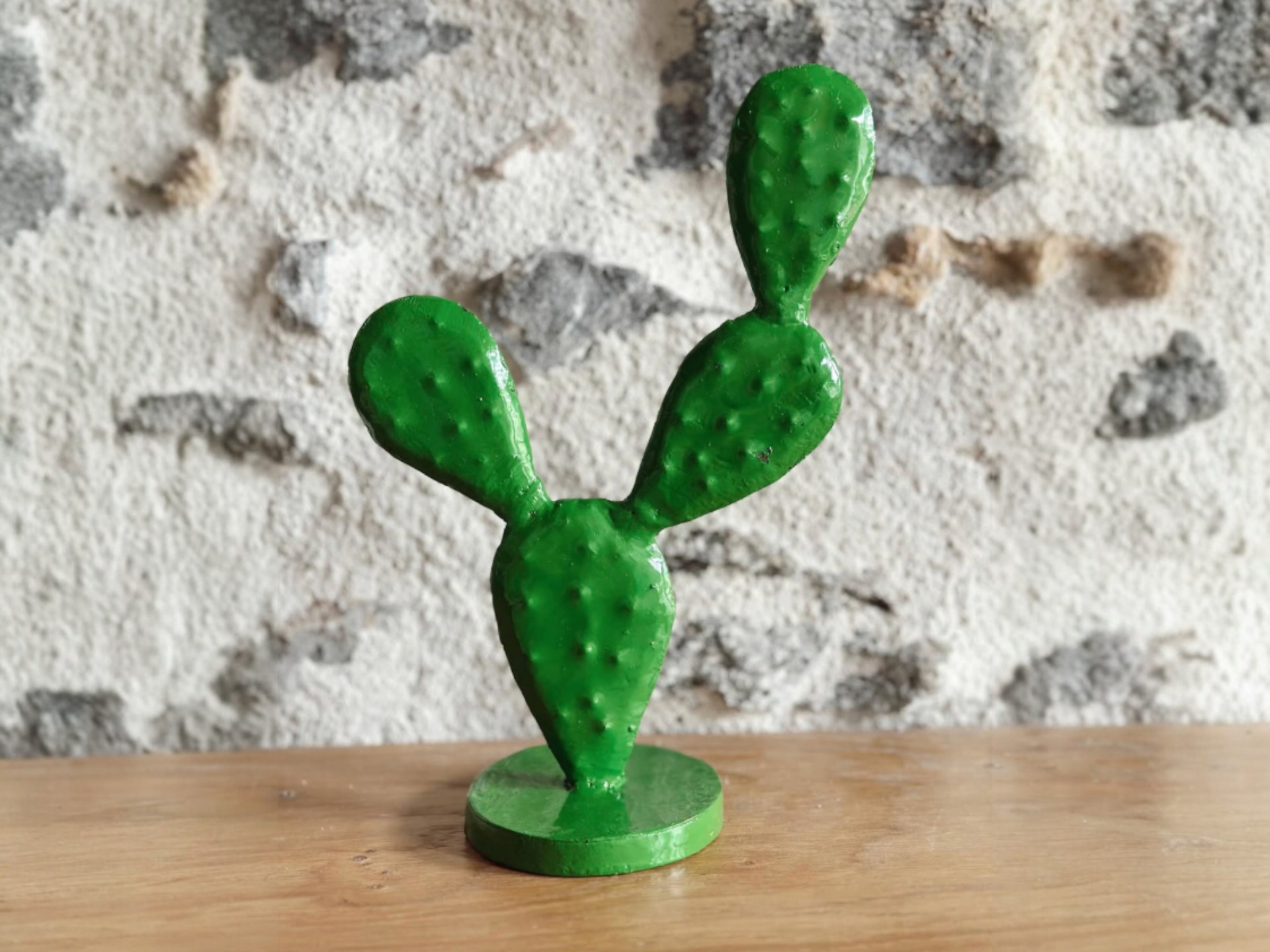 Nos cactus en métal sont traités contre la rouille afin de pouvoir être installés en extérieur. Toutefois, leur fabrication artisanale leur confère un caractère unique, avec parfois de légères irrégularités qui témoignent du travail de la main.